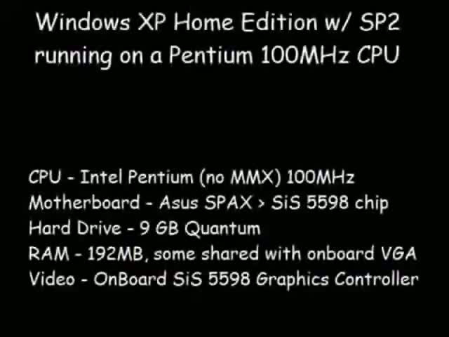 Windows XP Home Edition Service Pack 2 running on 100 MHz